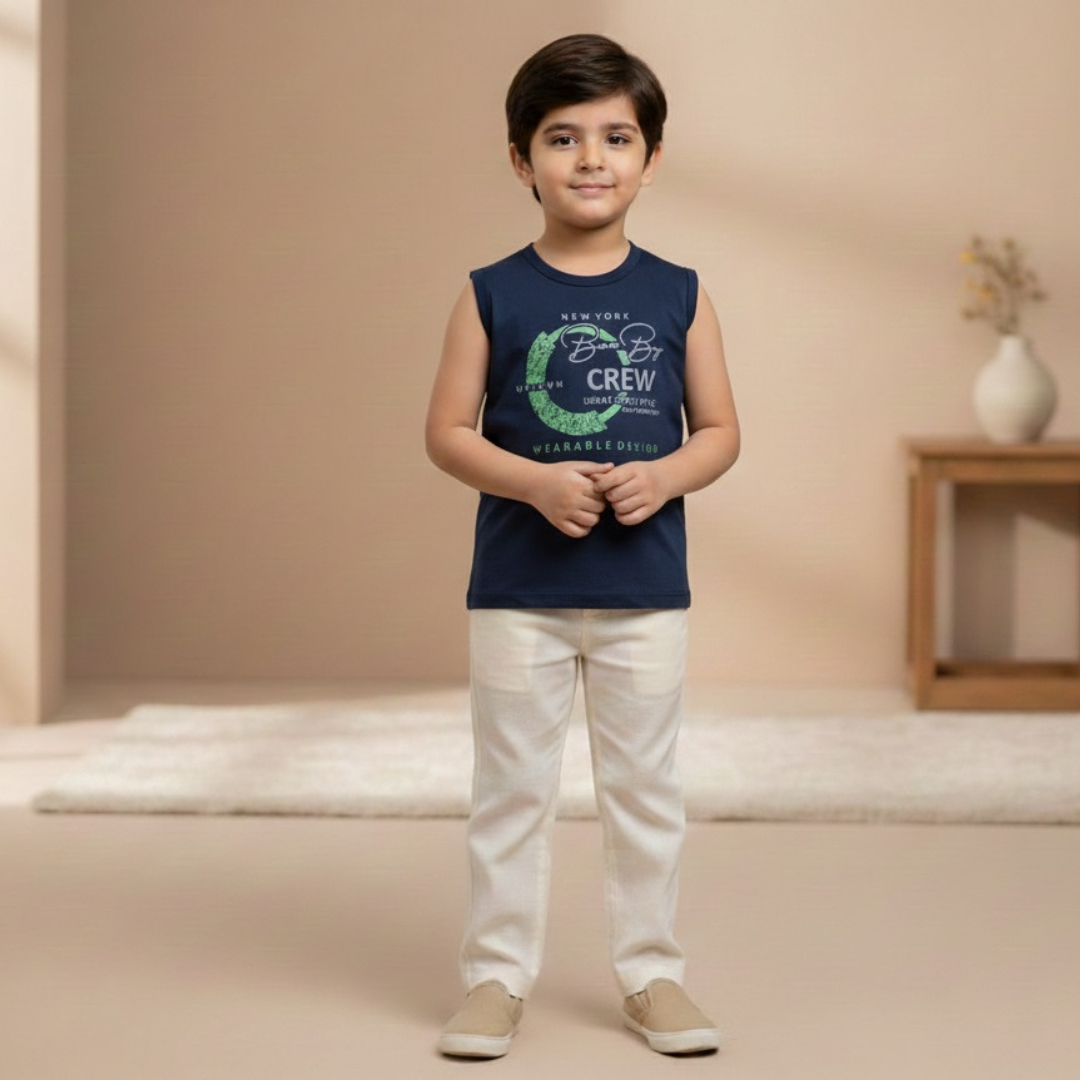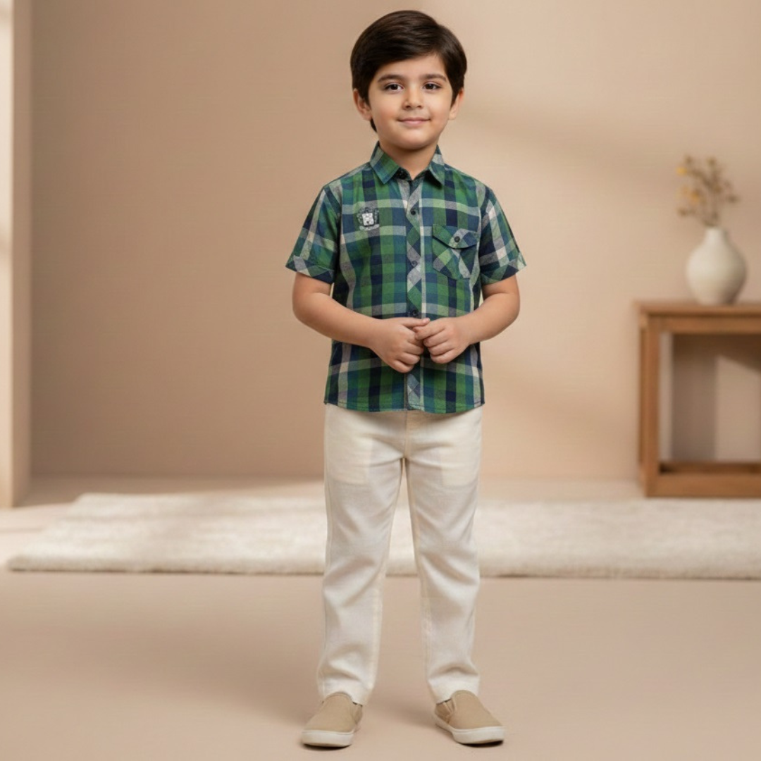 Give your child a sharp and modern look with this coordinated 2-piece set, perfectly designed for casual outings and warm weather: