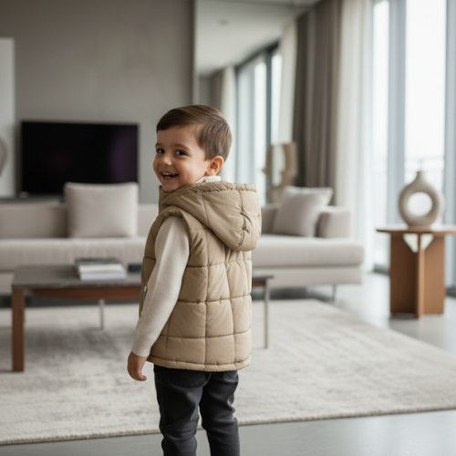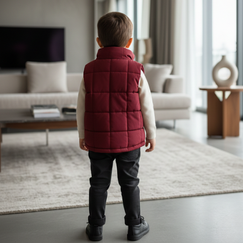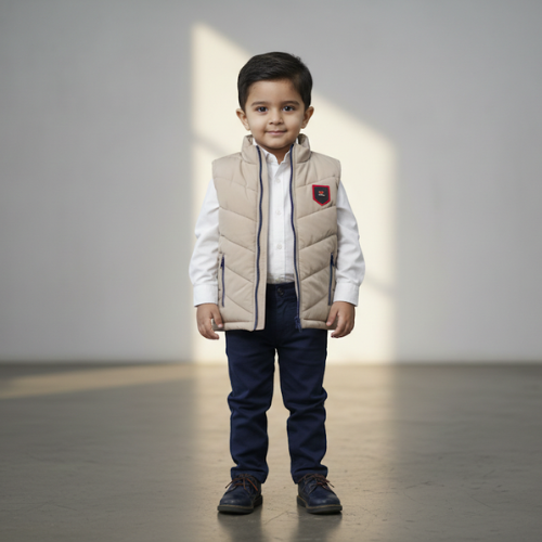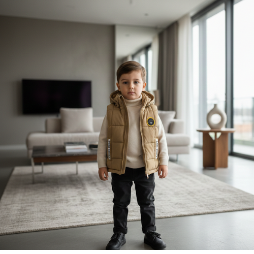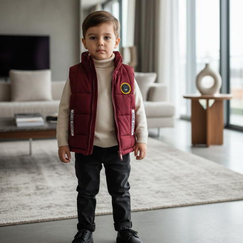 Elevate your little one’s wardrobe with the ultimate blend of warmth and sophisticated style. This premium quilted puffer vest is designed for the modern, smart toddler who deserves a touch of luxury. Featuring a classic chevron stitch pattern and a soft, high-quality finish, this gilet is the perfect layering piece for chilly days. The striking navy blue zipper accents and the signature heritage crest on the chest add an elite, designer feel that stands out in any crowd.